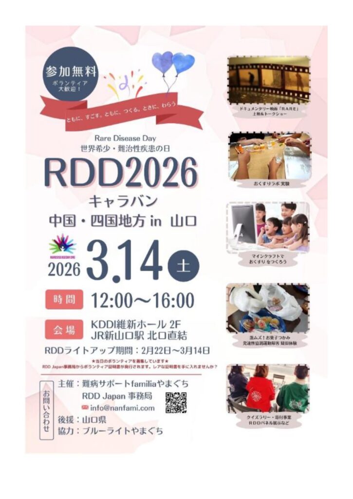 RDDキャラバンは来年は大阪での開催とのこと、また新しい出会いや発見が楽しみです!RDDJapan事務局や、RDD2026キャラバンを企画された難病サポートfamiliaの皆さん、本当にお疲れ様でした。たくさんのことを学ばせていただき、心から感謝しています。